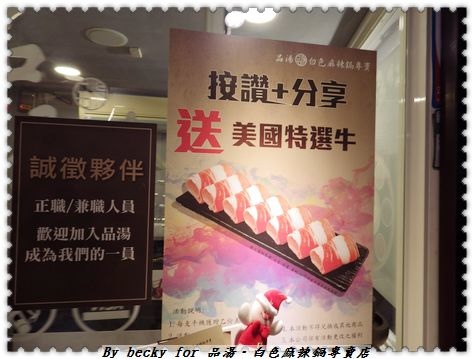 門口擺放著菜單,可供客人翻閱,還有現在打卡及分享還可送美國特選牛肉。