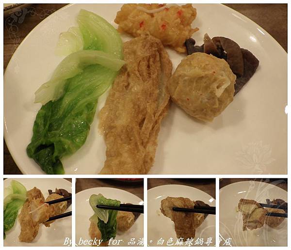 吃肉同時也不忘吃菜~略燙過的大陸妹非常清脆,豆腐皮吸附著湯汁有著濃稠的咀嚼感,火鍋料咬起來Q彈有口感,整個味道就很棒。