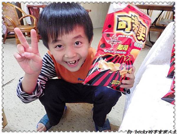 因為是辣口味,小朋友不敢吃,不過我家弟弟還是很高興的拿著它拍照呢!