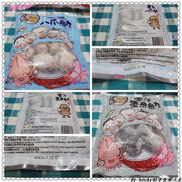 另二種是墨魚八爪魚丸及墨汁墨魚魚丸,淡藍色及淺灰色的外包裝,還有隻可愛的墨魚圖案,背後也是有著成品說明及資訊,當然也是有效日期。