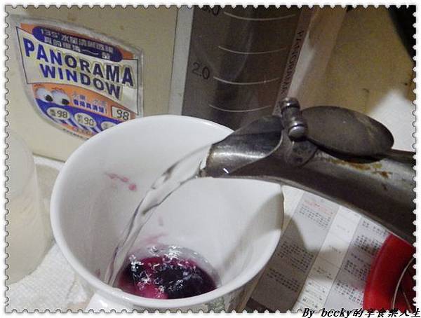 放入杯子中,用溫水沖入再均勻攪拌,一杯藍莓果汁上桌了!