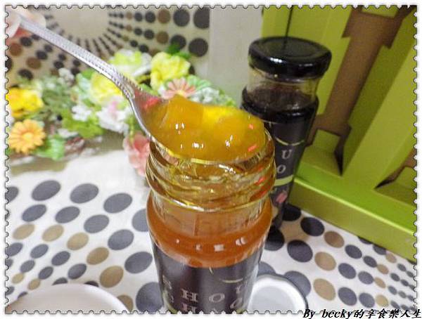 用湯匙舀一匙,可以看到一顆顆的水果粒。