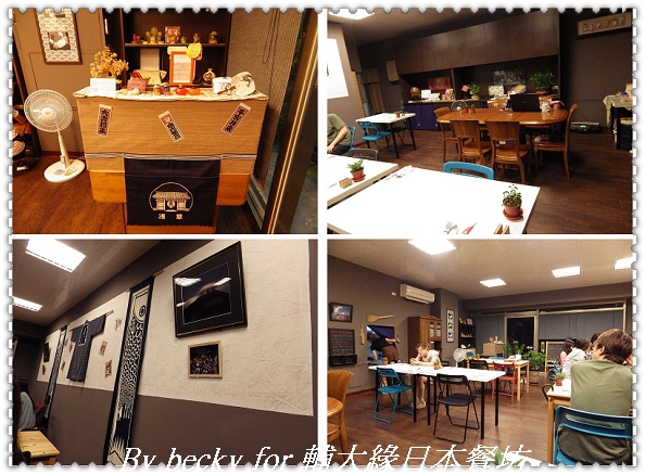 店內的幾張木桌椅也帶來溫暖氛圍,牆壁上的布招、器皿都是老闆娘籨日本採買回來的,讓人有處在日本的環境中。