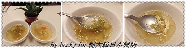 坐了一會兒,先送上的是今日的湯品,湯頭喝的蔬菜的鮮甜味,上面灑些芝麻,更是具有風味,更增進湯品的香氣!