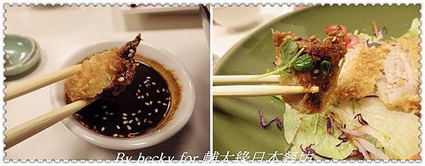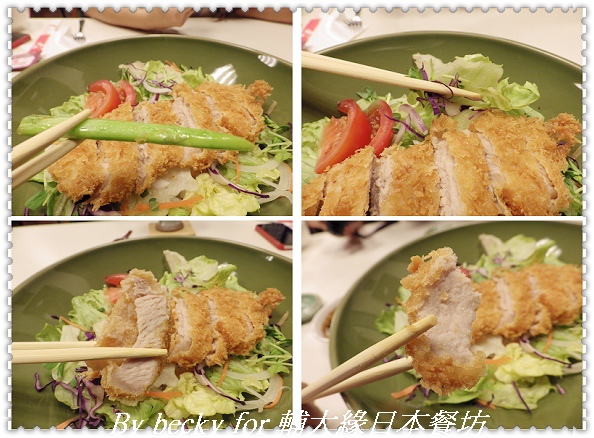 而豬排表面的炸的很酥,吃起來很香濃,吃了一口原味豬排,咬起來很紮實,但炸的時間有點久,肉汁沒有包覆在其中,有點乾澀,沾了濃郁的紅味噌醬,味道更是棒,略鹹的醬汁與清淡的生菜及白飯,讓人更是胃口大開,而米飯部份即使冷掉了還是帶有QQ的口感。