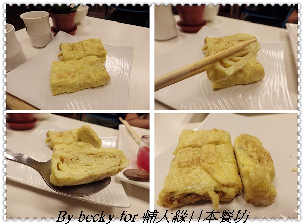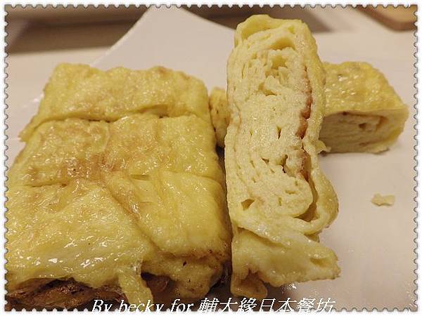 手作玉子燒煎到表皮金黃焦香,入口後鮮嫰柔軟,要吃上一份需耐心等候20~30分鐘,因是全蛋慢慢烘烤的,小心亦亦的捲成蓬鬆又帶點厚實的玉子燒,吃一口蛋香十足又帶點甜甜細細的味道,而少許的黑胡椒更是提升了玉子燒的甜味,讓人感到無比幸福感!