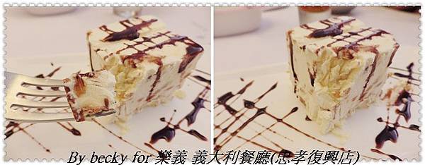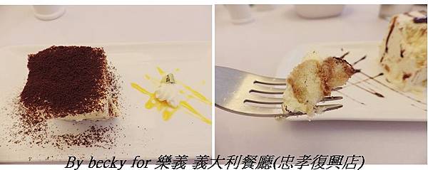 提拉米蘇部份就是一般吃到的提拉米蘇,軟濕適中,小朋友最愛的甜點,所以把上面軟軟的部份都吃光光,我吃了一口,嗯~感覺有點小甜。