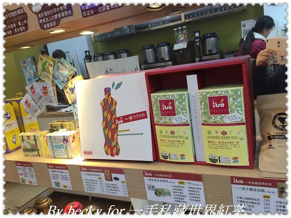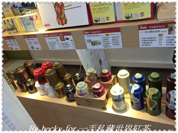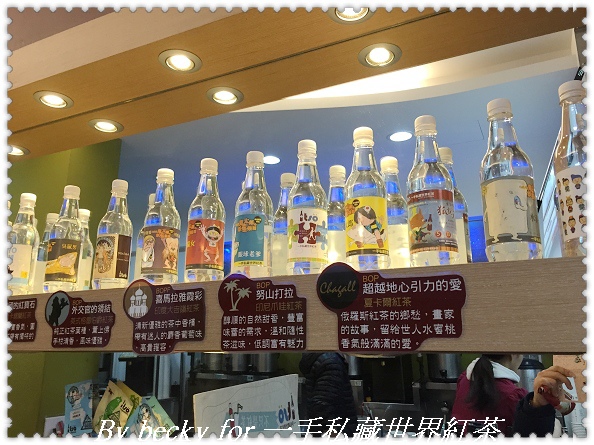 櫃台旁有著飲料種類的立牌,櫃子上擺放著茶罐及各種茶系列,當然也有介紹各國的茶品。