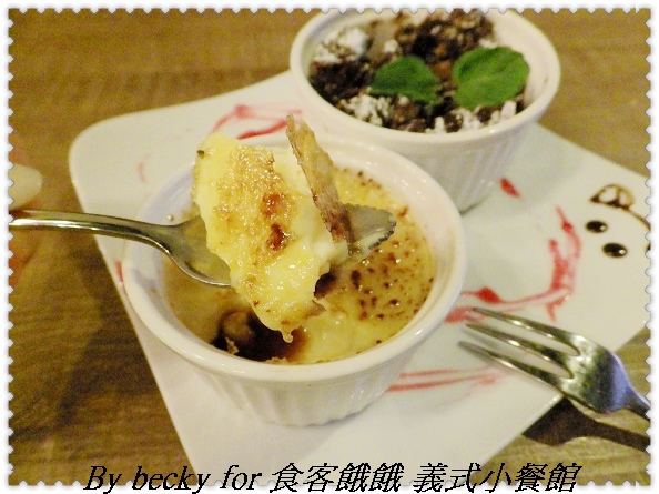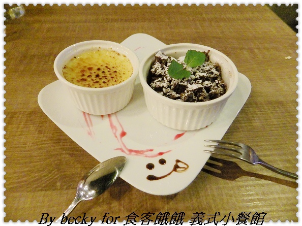 餐後當然是甜點~焦糖布丁及盆栽布朗尼。