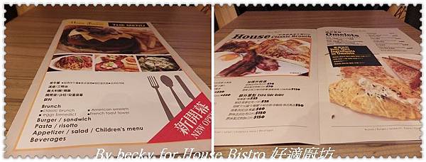 2014年11月才在台北市內湖區捷運西湖站1號出口附近開幕的【House-Bistro-好適廚坊】,就如同中英文店名一樣,以「家的第二個廚房」為理念,全日提供豐盛美味的美式餐點,臨櫃點餐的無壓力消費方式,輕鬆舒適的用餐氛圍,就如同在家裡用餐一般邊看電視看吃飯好自在。(取自愛評)