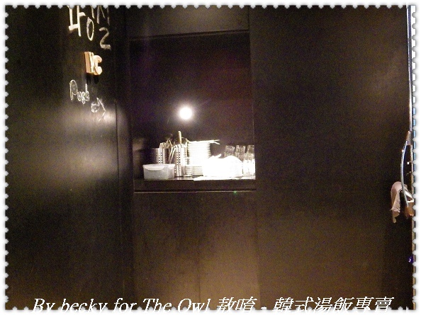 而我們座位後面則是廚房,做的很隱密,只看到餐盤及餐具。