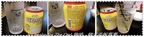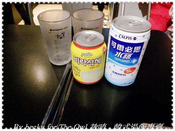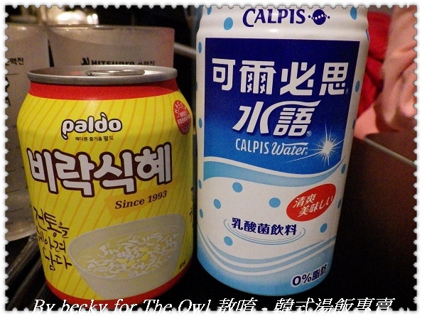 朋友選的可爾必思就是一般的乳酸飲料,味道甜甜的;我選擇的是芽小米甜湯,因為這個是韓國的飲品,去了韓國n次,一直都沒機會嚐試,這次來試喝看看,味道很甜,裡頭有芽小米,吃起來沒什麼口感,不過很好吞食,這個飲品在吃到油膩時,也是可以解膩的。