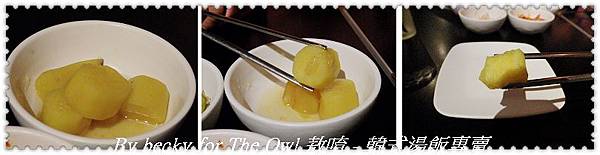 而地瓜部份則是偏甜,口感很綿密,很像在吃絲拔地瓜,但是又不會感到很黏稠,也不會難吃;最後的泡菜,很像台式泡菜,吃起來不會辣,酸度有夠,清脆度也夠。