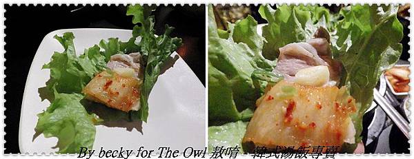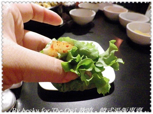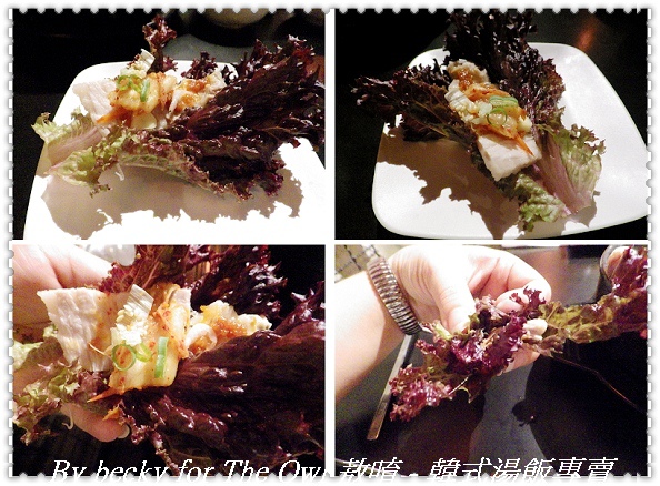 當然,還是繼續包不同的方式來吃~像是只加泡菜及辣醬的吃法,就比較沒味道了。