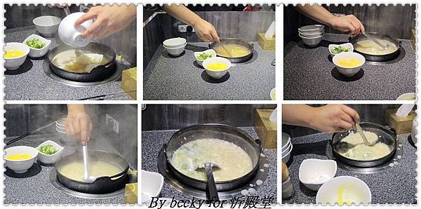 最後丫~店家特別用火鍋湯底來煮粥品,準備的材料有:白飯、雞蛋及蔥花。