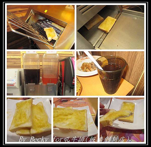 麵包部份是自己烤,要吃多少就弄多少,烤麵包"機"在動手時也要小心使用,烤過後的麵包吃起來大蒜味不重,入口後有點甜鹹,奶油味倒是比較濃烈點;紅茶部份很類似麥香紅茶,甜味適中,還不錯喝。