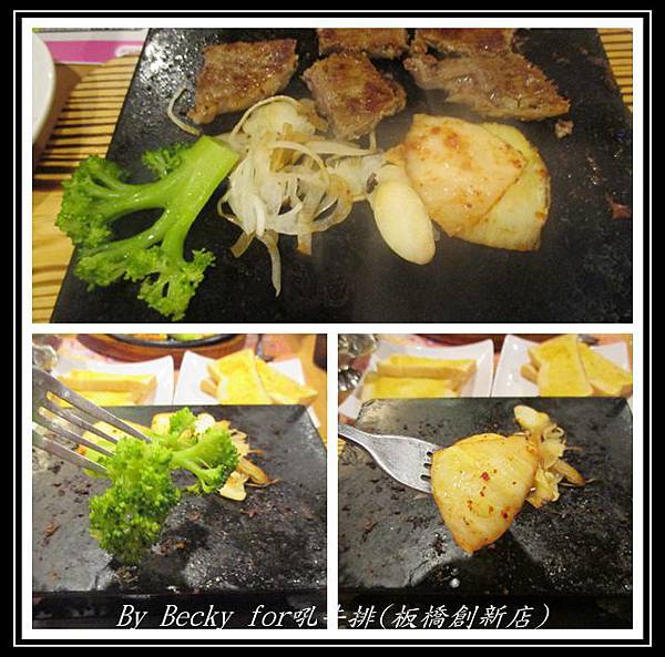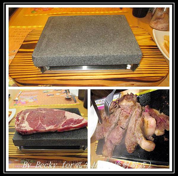 熱騰騰的岩石盤,把安格斯牛排一放上去,肉質馬上熟透,店員還交待這款牛排要吃3~5分熟最好,在手忙腳亂之下,牛排被我"煎"好了。
