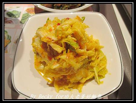 而黃金泡菜~吃起來有些微酸甜,我與朋友感覺比較像台式泡菜,入口後泡菜很清脆,還蠻