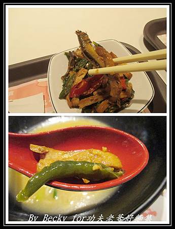 小魚辣椒部份~小魚很大一隻,配上豆干,味道十足,吃到辣椒還帶些後勁,配