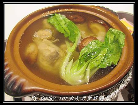再來是雞湯~湯頭很清澈,喝起來帶些香菇及薑味,香菇吃起來很多汁,味道不