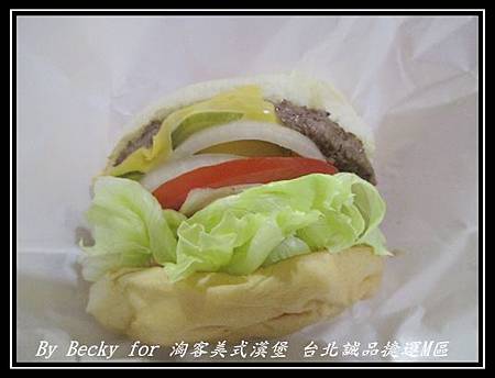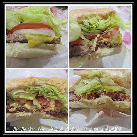 打開包裝後,可以看到層層分明:生菜、新鮮紅蕃茄、洋蔥、酸黃瓜、起司及牛肉,咬了一口,非常柔軟的麵包,混合著生菜及蕃茄的脆及鮮,酸黃瓜略鹹酸味帶著起士的香濃與牛肉的嚼勁,牛肉吃起來很紮實,熟度約7分熟,吃起來不會硬實還蠻有嫰性的,味道很棒也很開胃,所以一口接著一口吃完。