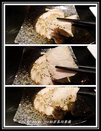 拿一片入口,吃起來帶有很濃厚的油脂,咀嚼後還有鮭魚香氣留在嘴中,相當新鮮,沾著調味醬吃,更是有著不同口感,只不過油脂太過豐盛,吃多會些膩。