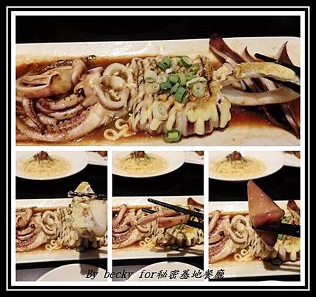 炙燒深海魷魚美乃滋送上後,就有聞到很濃香的醬汁味,一整條的魷魚送上桌來,炙燒後的魷魚肉質很Q,非常有彈性,上面的美乃滋不會很膩,與醬汁融合後,帶些鹹甜口感,咀嚼起來非常Q嫰也很新鮮。