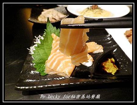 說真的,我點的是日式鮪魚,結果店員來跟我說什麼鮪魚煮要等10~20分鐘,我還很納悶生魚片為什麼要煮咧??然後叫我們換成鮭魚,因為可以不用等,當然我也就換了鮭魚了~送上來後,看起來很新鮮。