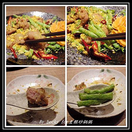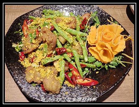 而這道的配色也是非常吸引人,而食材有豬助排、四季豆、辣椒及綠豆芽菜,再配上蒜酥;豬肉的口感很非有嚼勁,在吃中還帶些肉汁,而蒜酥更能引出豬肉的味道,四季豆吃起來則是很清脆還帶有水份,並沒有因炒過後而失去其風味,這道也蠻推的!