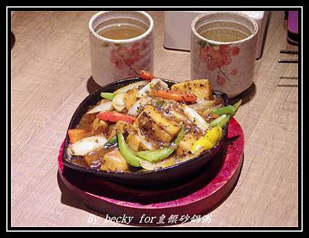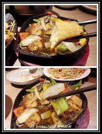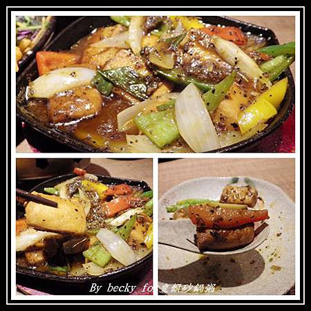 這裡頭有著雞蛋豆腐、青、紅、黃椒及洋蔥,加上主廚特調的黑胡椒醬,與鐵板加熱融合,可以聞到很香濃的香味,雞蛋豆腐吃起來很實在又帶點嫰,而青紅黃椒及洋蔥與黑胡椒醬混合,吃起來帶些微辣且多汁,很適合當粥品的配菜。