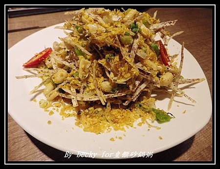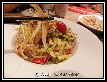 主廚兼老闆有20年的廚藝,且也待過了很多大飯店,像是中興飯店、六福皇宮等,因緣際會下吃到了板橋一家粥品後,自己再去研發,所以去年6月就開了這家砂鍋粥店;所以主廚有推薦了幾道~也都陸續上桌了,首先是泰式寒天雞絲(NTD180)。