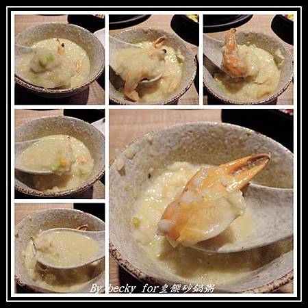 舀了一碗,可以吃到粥裡吸飽了海鮮的精華,而湯底部份,店家是用雞胸骨、昆布及蔬果混合,再加入生米去熬煮,所以每一顆米粒都可以吸收著精華,在品嚐的同時,也可以吃到其他的海鮮的味道,蟹肉的紮實、蝦子的味甜、珠貝的嚼勁,當然也是有吃到蟹黃,整個就很美味!大家都吃的很過癮。