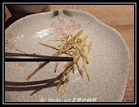 這次的菜單是由家搭配,所以我們就等著上菜~在等時,店家端上了一盤招待菜:芋絲櫻花蝦。