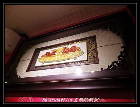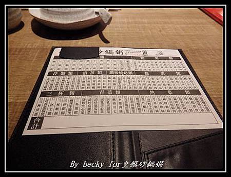 而我們坐的位子則是六人桌,桌上有已有碗盤及菜單,而背後的牆上則有著古雅的裝飾。