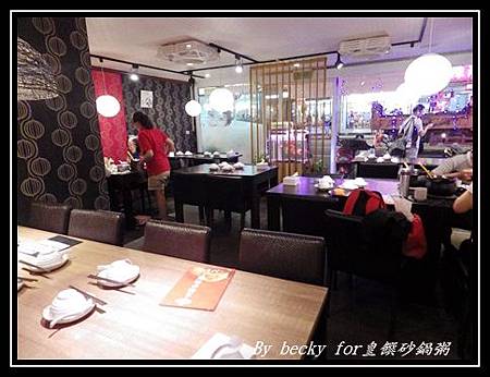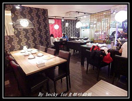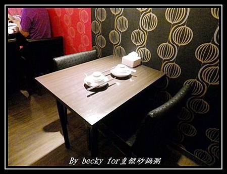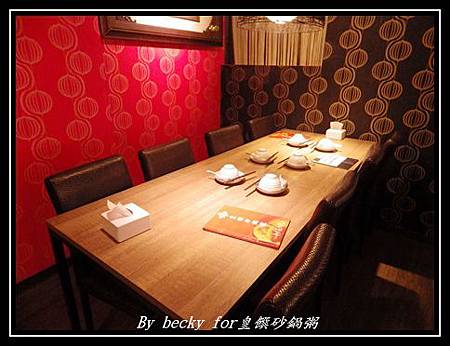因有事先訂位,所以招待入坐後,大約環顧一下環境,店內的位子沒有很多,有二人、四人及六人不等的桌子,而店內裝潢則是、紅、金混搭,簡約樸實中又帶點幽雅。