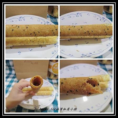 蛋捲的味道很濃厚,上頭有著黑芝麻,吃了一口,非常脆酥,可以吃到雞蛋香及黑芝麻香氣,捲度大約有3層,並不會很厚,也不會很甜膩,這個也很好吃!