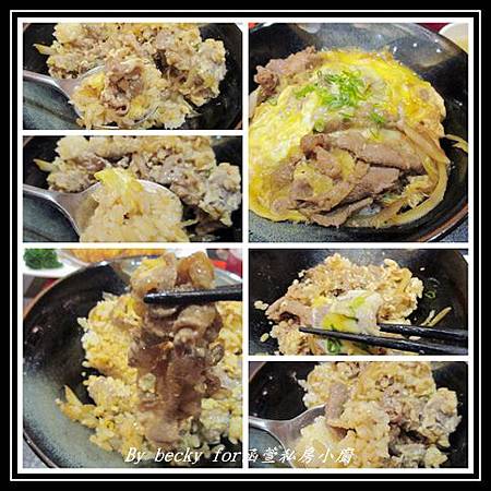 而主餐牛丼呢~送上來味道很濃厚、很香,老闆娘還很貼心的交待說要攪拌,讓醬汁及滑蛋與飯融合,味道才能更棒;舀了一匙飯入口,醬汁與飯十分搭配融合,