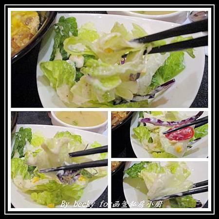 生菜沙拉裡有著生菜、玉米及小蕃茄,淋上醬汁後,味道十分融合,生菜很清脆又新鮮,玉米很甜,整個就很開胃。
