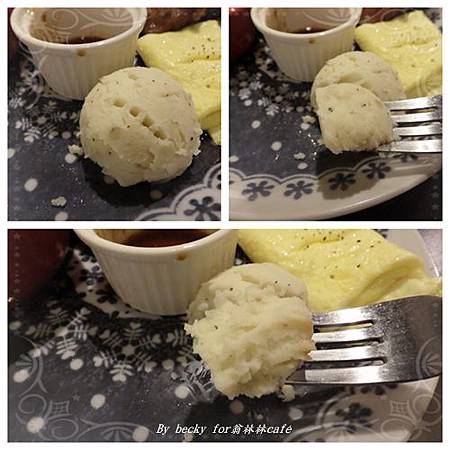芋泥球則是用洋芋製成泥,非常綿密的口感,上頭灑些黑胡椒,有些微的鹹香味。