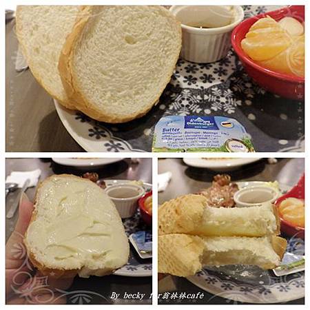 軟法麵包則是外酥內乾,塗上奶油,吃起來味道重。