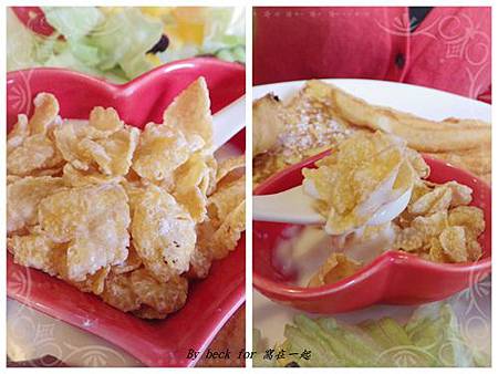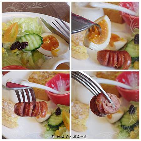 窩在一起套餐裡有:鮮奶法國土司、生菜沙拉、燕麥優格、溏心蛋、德國香腸及脆薯;燕麥優格是原味優格加燕麥脆片,很爽口。