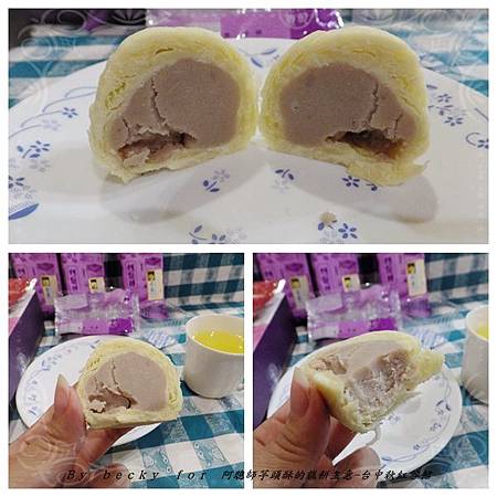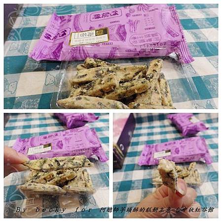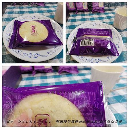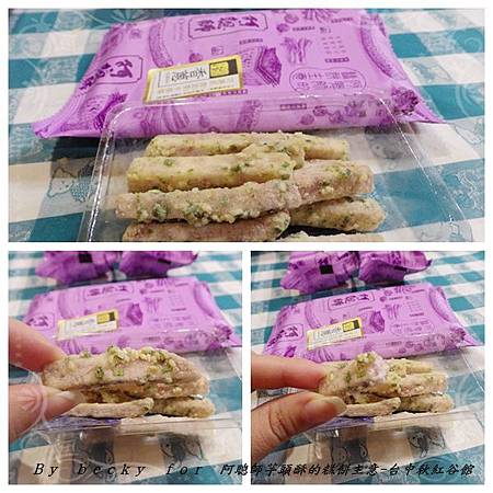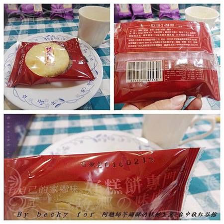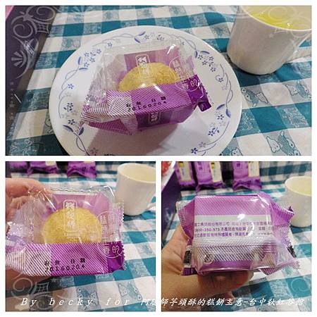 芋頭小酥餅~在大甲,酥餅是伴手禮之一,大部份都是奶油酥餅,而後陸續就有各種口味的酥餅推出,這次的芋頭小酥餅也是獨立包裝,在正面也有印製著有效日期,背後則是有公司名及小敍述。