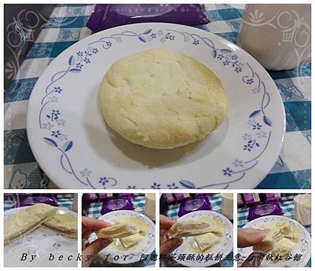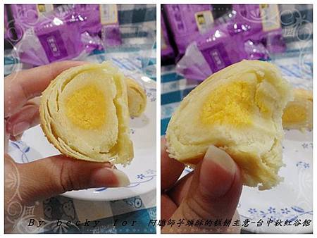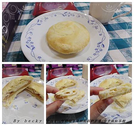 打開後一樣對切,這個則是奶香重,入口後裡頭的內餡比較甜些,外表也是很酥脆的。