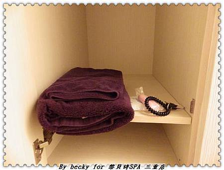 櫃子裡有著浴巾及紙褲,還有櫃子的鑰匙。