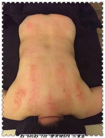 唉哎哎!這是有史上以來最大的尺度了!!接下來就可以看到我身體的"毒素"還真不少,因為都已經出痧了。