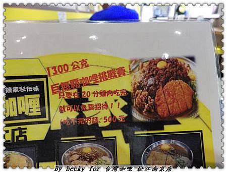這是菜單~沒錯,特地拍了巨無霸的咖哩挑戰~我是很想參加,不過心有餘而力不足丫!!