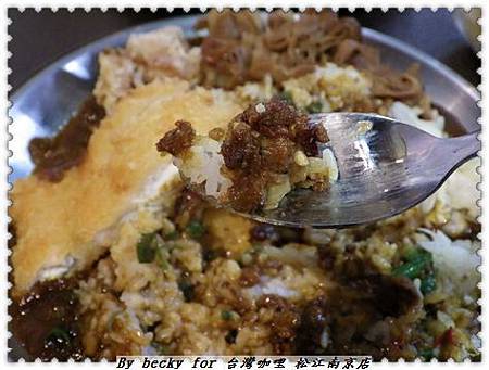 咖哩是溫和的辣,而肉燥的辣是有些小刺激,二者加一起,居然很合,再加上把蛋黃戳破一起混入,味道重又好下飯,真是美味!