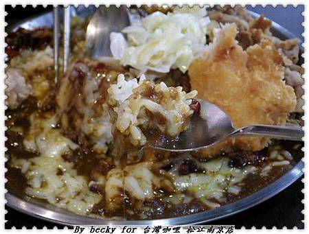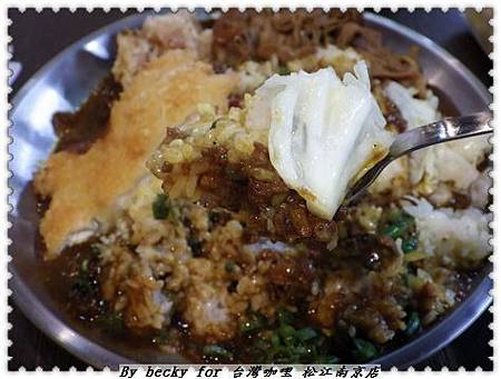 朋友的涮豬肉台灣咖哩飯則是多添加了起士,在辣中帶著起士的鹹香,整體入口,真是意想不到的搭配。