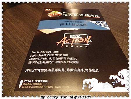 這張是搶先體驗的菜單~開丼Action是為了方便忙碌及趕時間的人,提供了一個快速又可以飽食的新選擇,讓時間有限的人可以享受到美味。