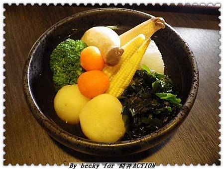 這碗有海帶芽、白蘿蔔、玉米筍、胡蘿蔔、花椰菜、荸薺,吃起來很新鮮,沒有多餘的調味,非常清淡,食材都很新鮮,入口咀嚼有清脆感,個人還蠻愛這道味的。